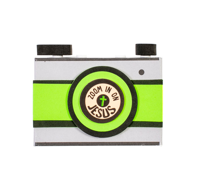 This camera reminds students to zoom in on Christ! Kit includes paper mache camera and self-adhesive foam pieces. 4¾" x 1½" x 3¾".